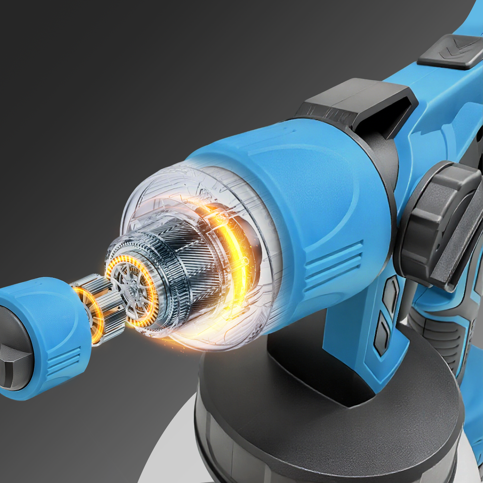 Valis har et avansert kjølesystem som raskt sprer varme for å hindre at motoren blir overopphetet. Selv under langvarig og kontinuerlig bruk holder enheten seg kjølig, slik at du kan jobbe lengre uten å bekymre deg for at den blir for varm eller overbelastet. Dette sikrer en trygg og stabil maleopplevelse.