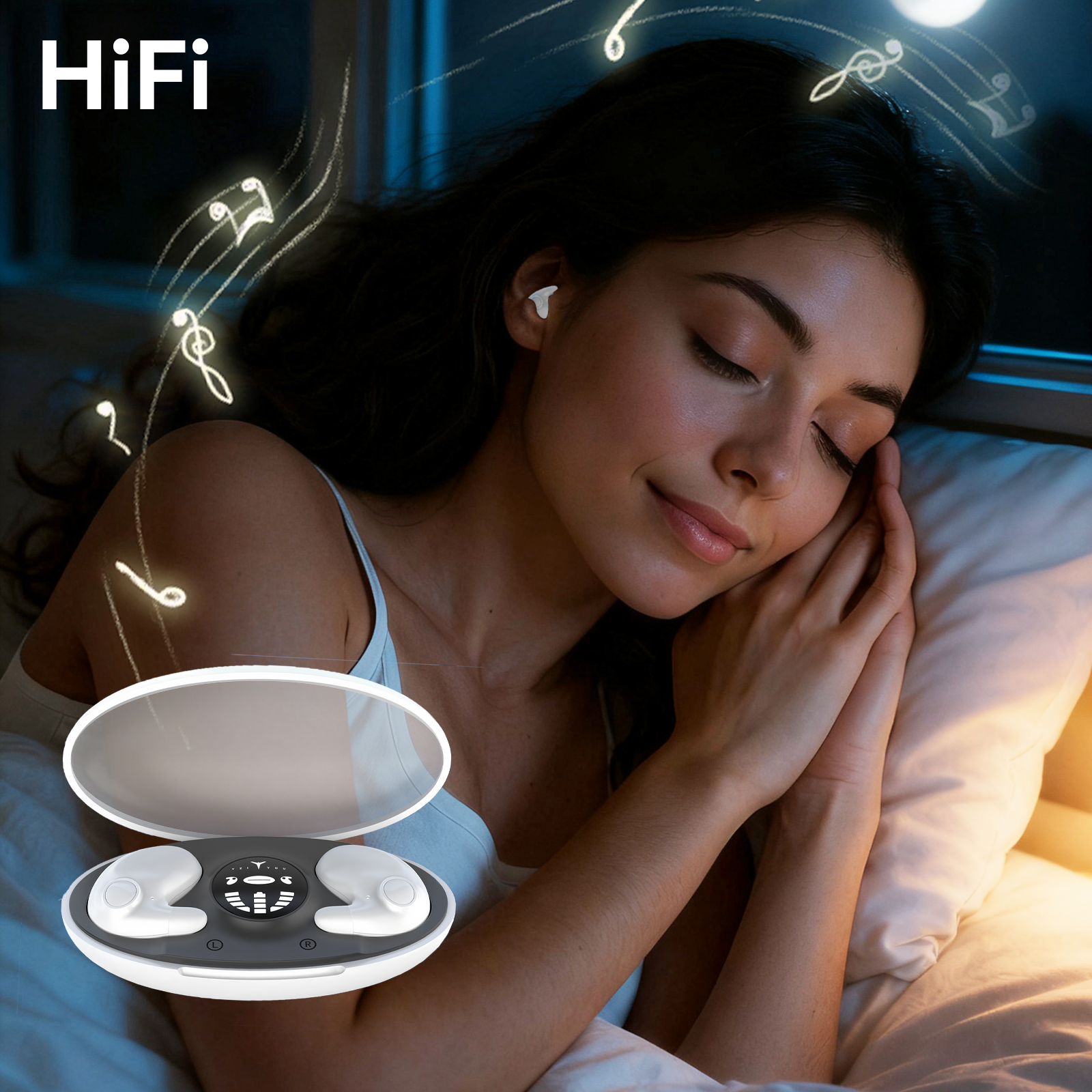 Valis lar deg kontrollere lyden på den mest komfortable og enkle måten. Bare trykk på øreproppens overflate for å pause søvnlåtene eller svare på viktige samtaler. Denne enkle touch-kontrollen vil ikke forstyrre din side-sove posisjon, og lar deg administrere lyden med letthet mens du forblir avslappet og komfortabel mellom søvn og våkenhet.